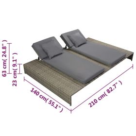vidaXL Sunloungers 2 pcs with Table Poly Rattan Gray